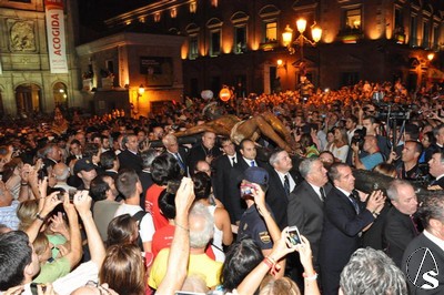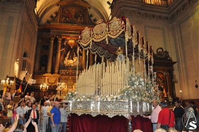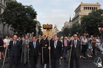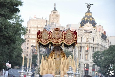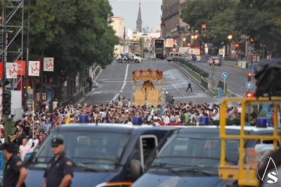 Fueron dos horas de traslado que culminaban ya sobre las 07:45 horas alba con la llegada del palio a su lugar frente al escenario del antiguo edificio de correos y hoy convertido en Ayuntamiento y con el resto de participantes ya en el Paseo de Recoletos y la Salve que puso punto y final al traslado.