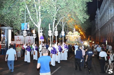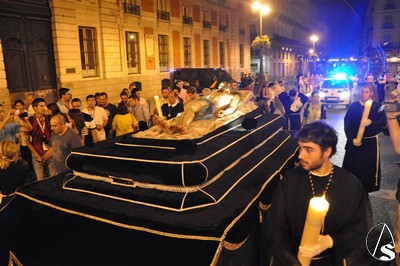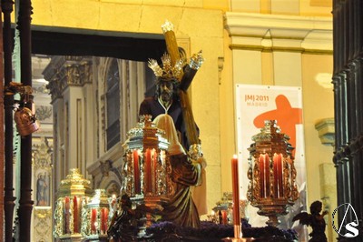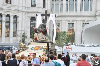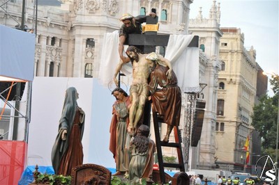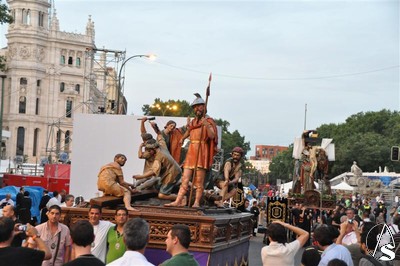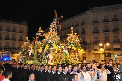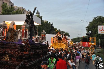 Madrid se convirtió por dos días en un tiempo de Semana Santa que sólo las altas temperaturas nos hacían recordar que era agosto y no marzo. Todo comenzaba a las 22:30 horas con la salida multitudinaria del Cristo de Mena y que seguiría con el Beso de Judas una hora más tarde, Titulares que se encontraron ya muy cerca de Cibeles y que, frente a frente, se hicieron los correspondientes saludos. La siguiente salida nos proporcionaba un respiro para cenar y dirigirnos hacia la Colegiata de San Isidro, donde los cuatro pasos allí instalados comenzaban el recorrido hacia el Vía Crucis en una noche con sabor a Viernes Santo.