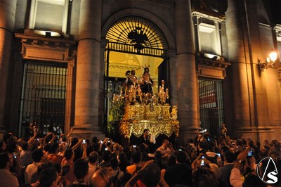 José García Monge y su equipo comenzaban los movimientos, primero a pulso aliviado, después la primera “levantá”, lo que produjo un intenso aplauso que se repitió en cada una de las posteriores. Llantos emociones contenidas y Sevilla que cada vez más se hacía presente en el barrio de Los Austrias madrileño