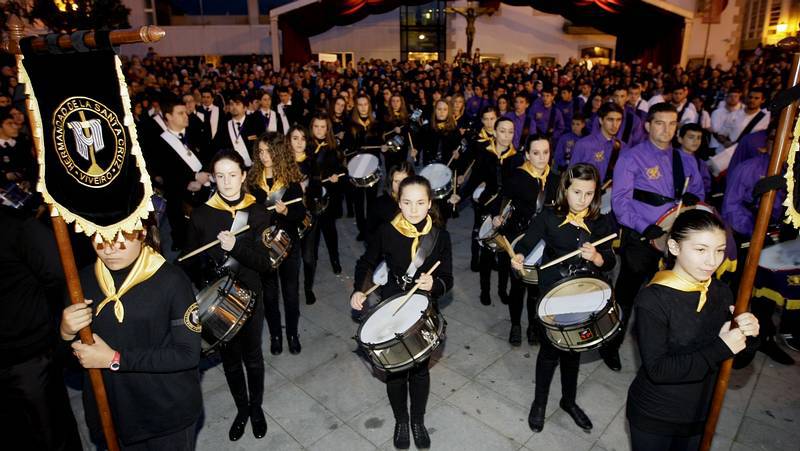 La «tamborrada» protagoniza sin duda en Viveiro la noche del lunes santo cada año. Y ayer el tiempo acompañó, aunque amaneció gris y frío, a medida que avanzaba la mañana el cielo se fue despejando y subieron las temperaturas manteniéndose ya durante toda la jornada. Ideal para que los jóvenes salieran atronando las calles del casco histórico de Viveiro con los tambores hasta acabar, como también es habitual, en la Plaza Mayor. Luego en San Francisco siguió un concierto de la coral Alborada y la Orquesta de Xove.